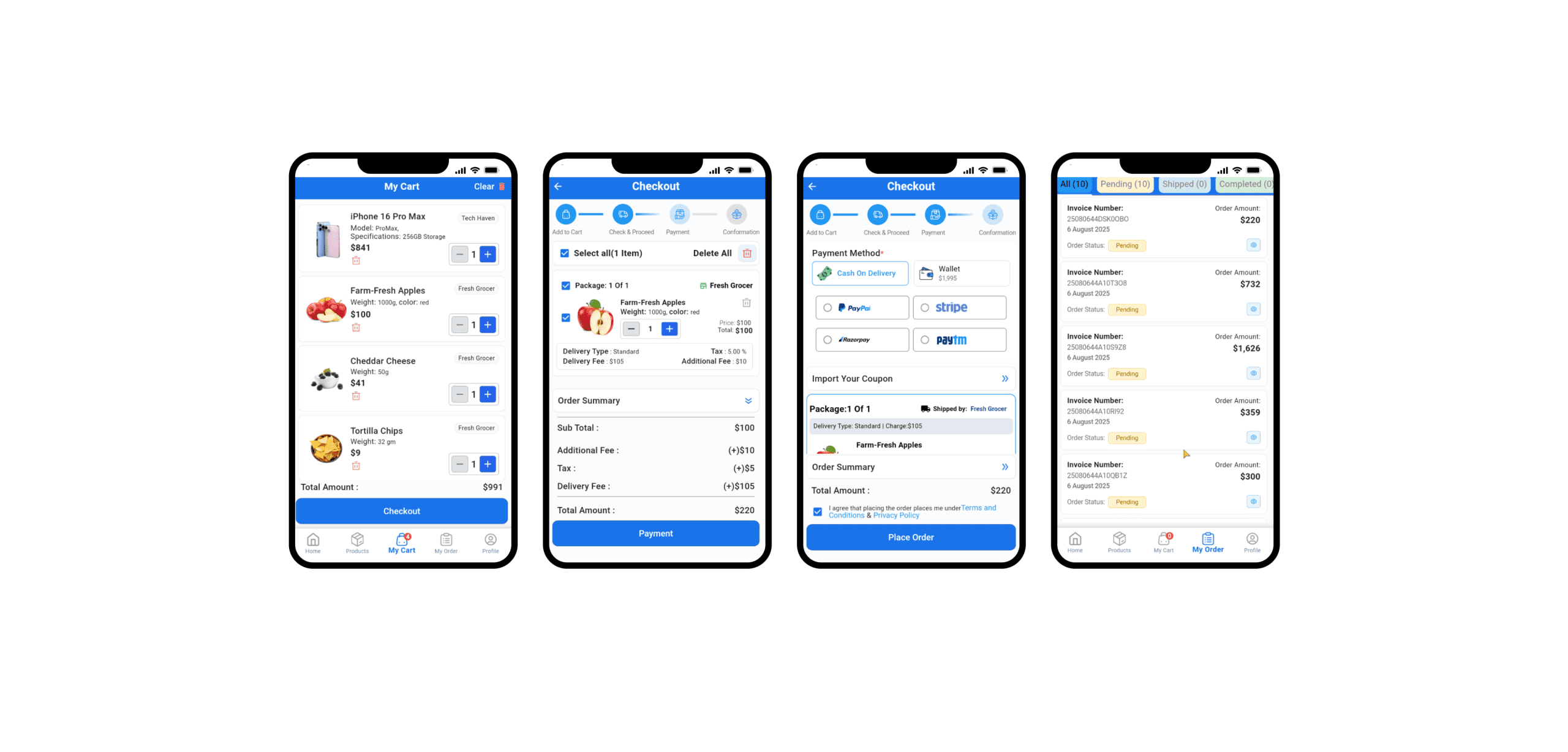 Integrates with multiple payment gateways, supporting cards, wallets, and cash on delivery to suit all user preferences.