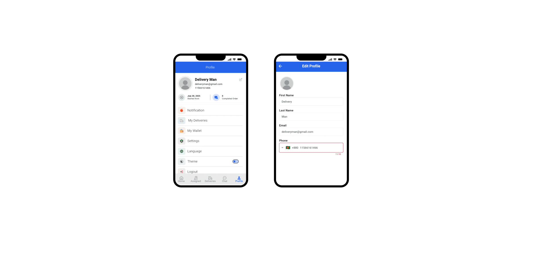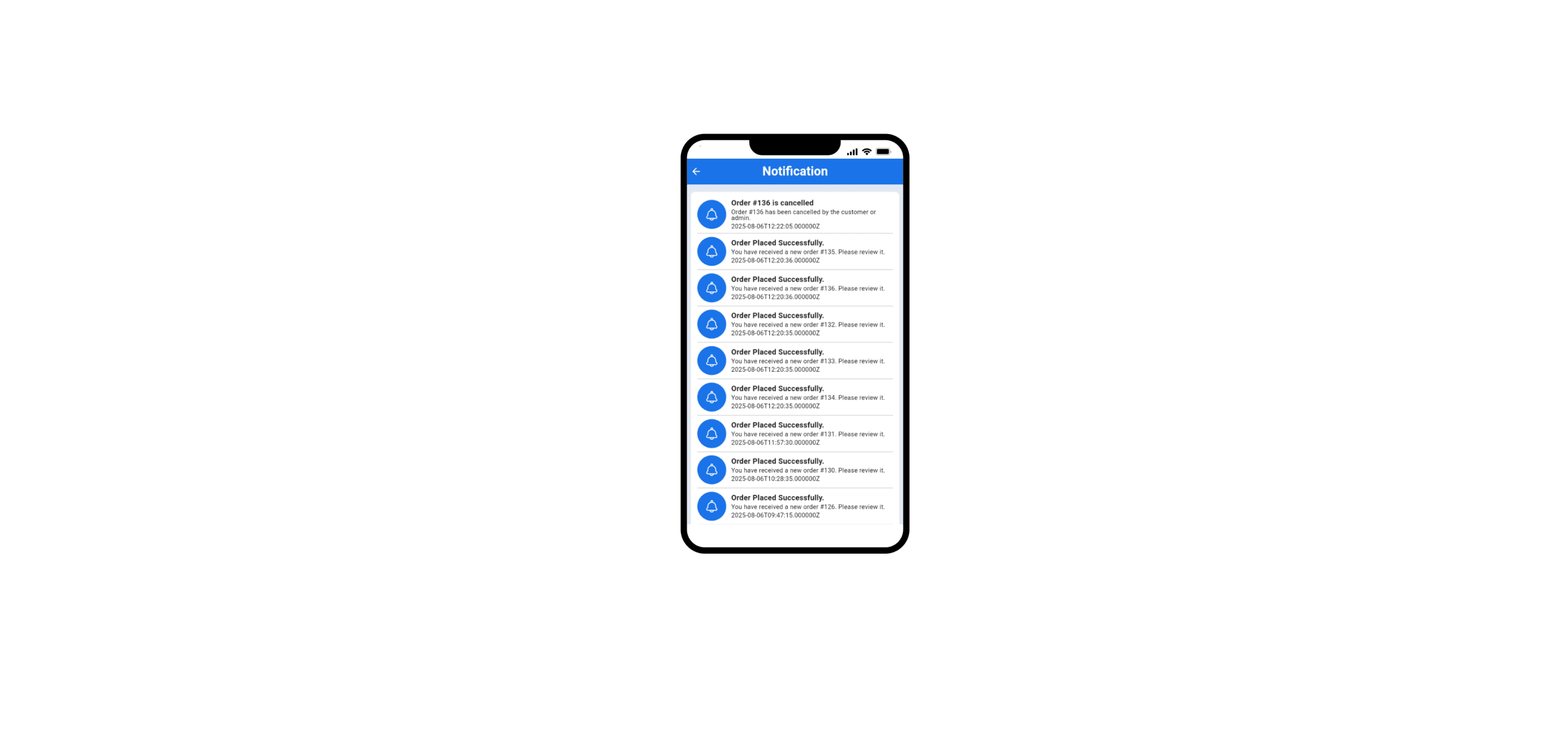 Stay notified of new order assignments, status changes, payment updates, and admin messages via instant push notifications.