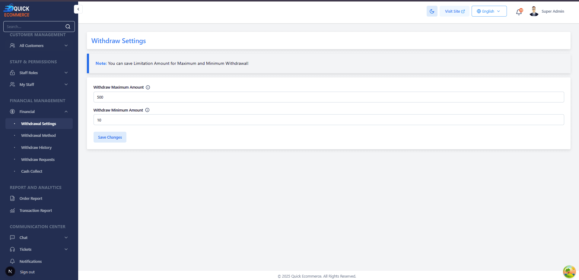 Quick eCommerce is a multi-vendor eCommerce solution designed to simplify business management. It allows you to operate and control multiple vendors and stores from a single platform.